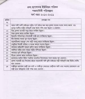 ৩নং ছাগলাদহ ইউনিয়ন পরিষদের প্রত্যেক ওয়ার্ডে মিটিং এর মাধ্যমে পঞ্চবার্ষক পরিকল্পনা করা হয়। ৩নং ছাগলাদহ ইউনিয়নের পঞ্চ বার্ষিক পরিকল্পনা নিস্মে দেওয়া হলো।